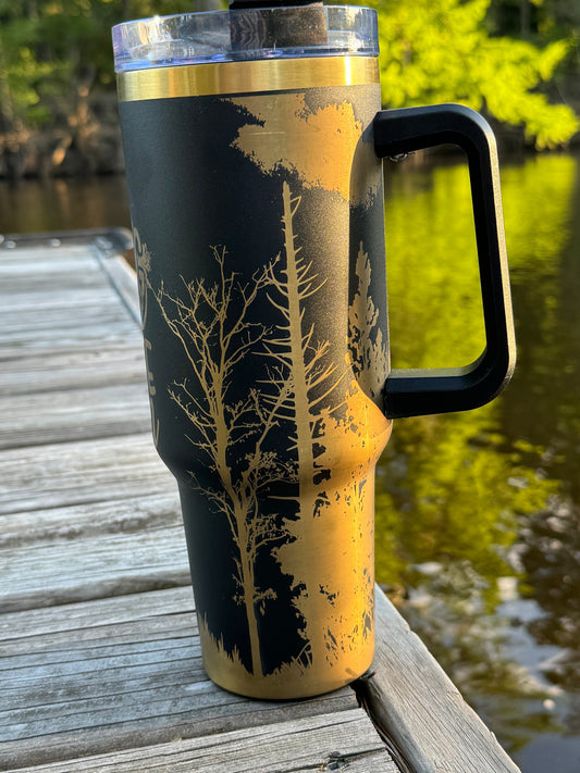 40 oz Stainless Steel Tumbler - Deer hunting Scene | Laser Engraved Wildlife Design | Hot & Cold Drink Insulation | Durable Gift for Hunters