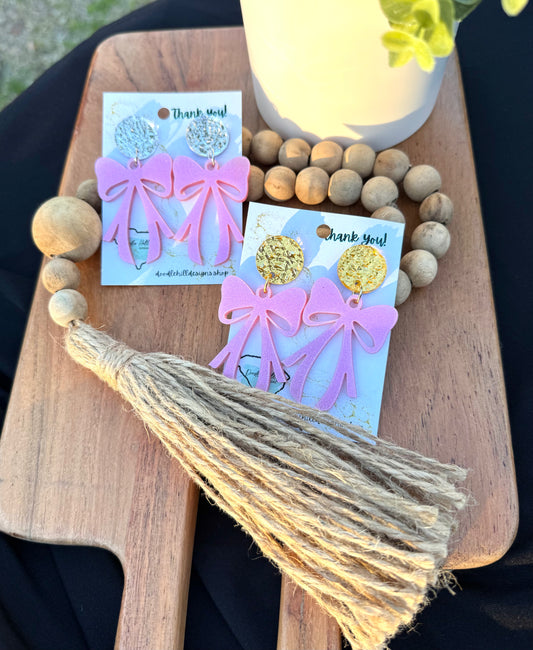 Shimmer Glitter Coquette Bow Earrings – Lightweight Acrylic Statement Jewelry with Gold or silver Textured Post