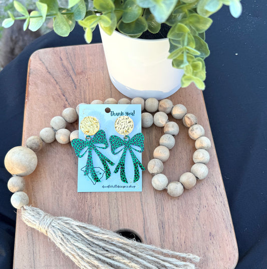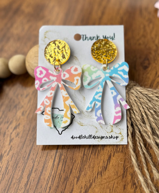 Green leopard Coquette Bow Earrings – Lightweight Acrylic Statement Jewelry with Gold Textured Post