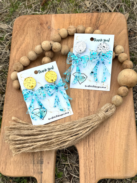 Baseball mom Coquette Bow Acrylic Earrings – 2 Inches – Customizable Posts