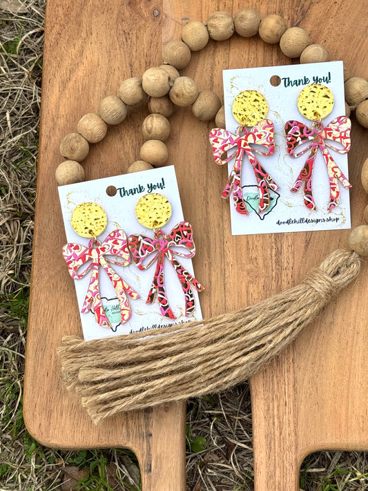 Coquette Bow Earrings – Lightweight Acrylic Statement Jewelry with Gold Textured Post, Valentines Day