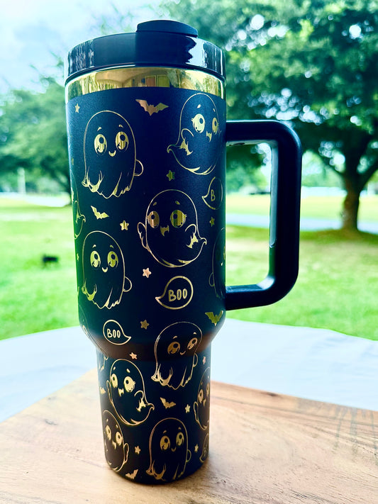 40oz Halloween Ghost Tumbler – Cute Boo Baby Ghost Stainless Steel Mug with Handle & Straw | Keeps Drinks Hot or Cold