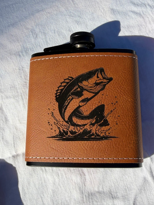 8oz Leatherette Wildlife Flask – Deer & Bass Engraved Flask | Hunting & Fishing Gifts | Outdoorsman Gift | Insulated Pocket Flask for Men