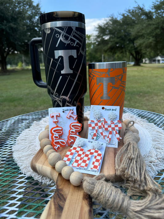 Tennessee Vols gameday accessories, 40 oz black unbranded, stainless steel Tennessee vols football theme, gift for the ultimate VOLS fan
