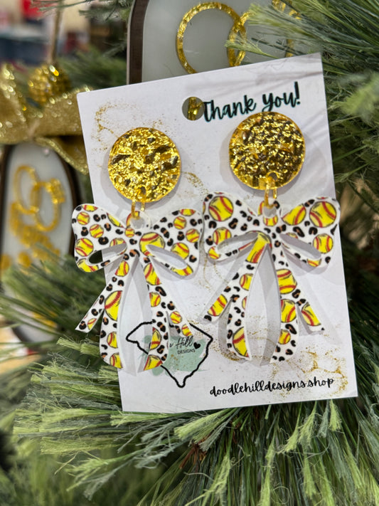Softball Coquette Bow Acrylic Earrings – 2 Inches – Customizable Posts