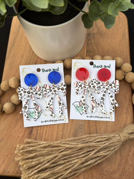 Baseball mom Coquette Bow Acrylic Earrings – 2 Inches – Customizable Posts