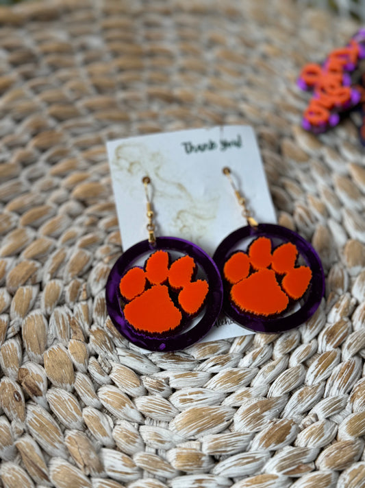 Tiger paw earrings, Gameday statement earrings, School spirit, Clemson, All in, gameday at clemson