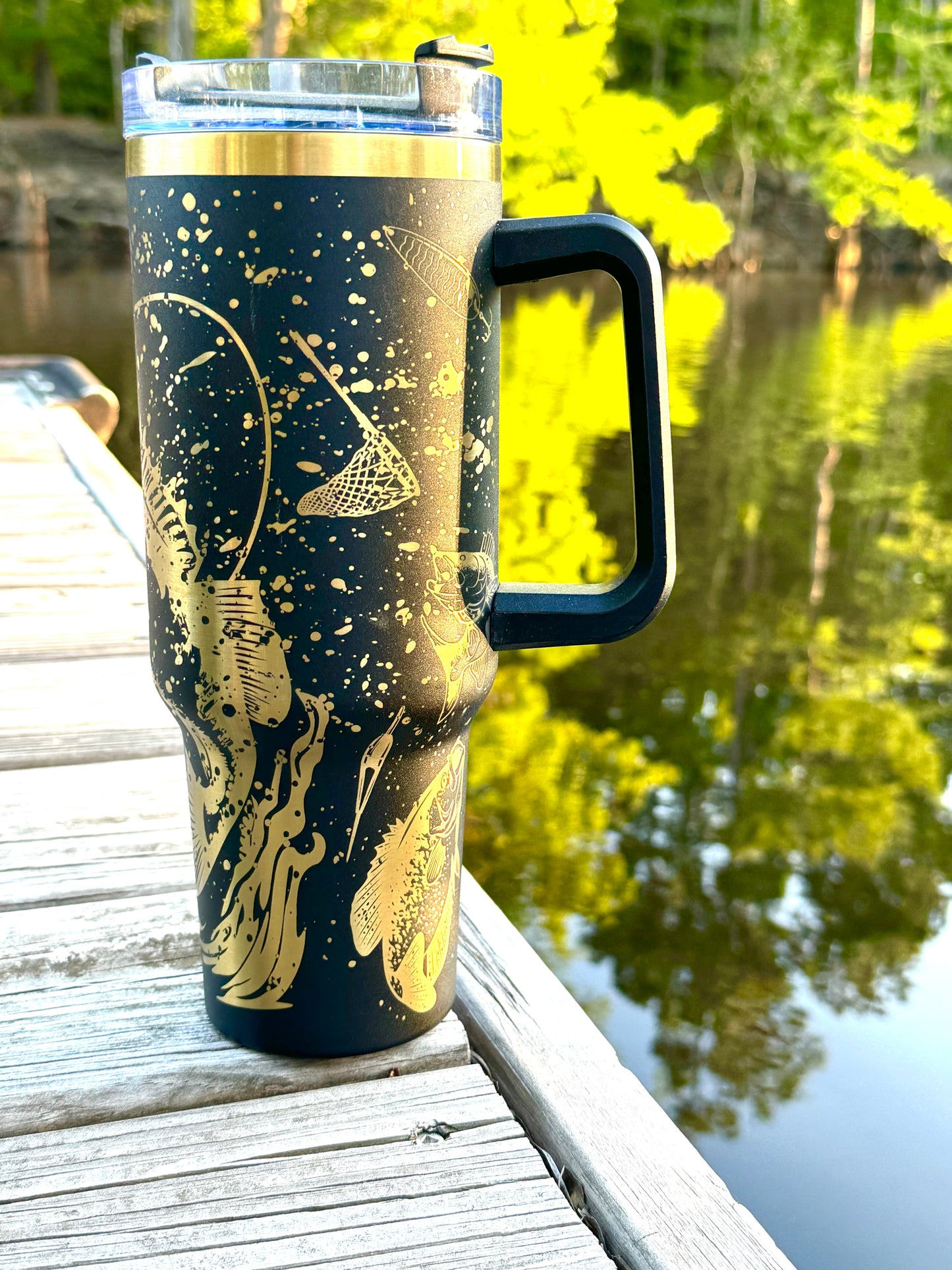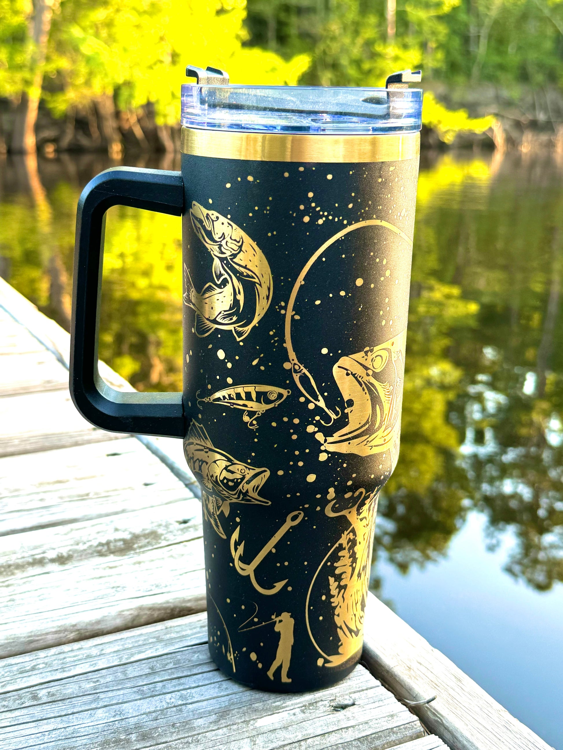 : Stay refreshed during those early morning tournaments or long afternoons in the lake with our 40 oz stainless steel tumbler, featuring a stunning laser-engraved fishing scene. Perfect for any wildlife enthusiast or fisherman, this tumbler is built to last and keeps your beverages at the ideal temperature, whether hot or cold.