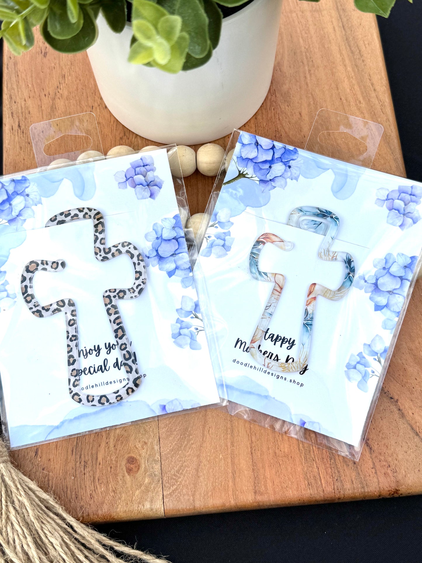 Celebrate faith and style with these beautifully designed acrylic cross-shaped book marks. Each book mark features a unique printed design, including trendy leopard print and elegant watercolor florals, making them a perfect gift for Mother's Day, Easter, baptisms, or everyday inspiration.